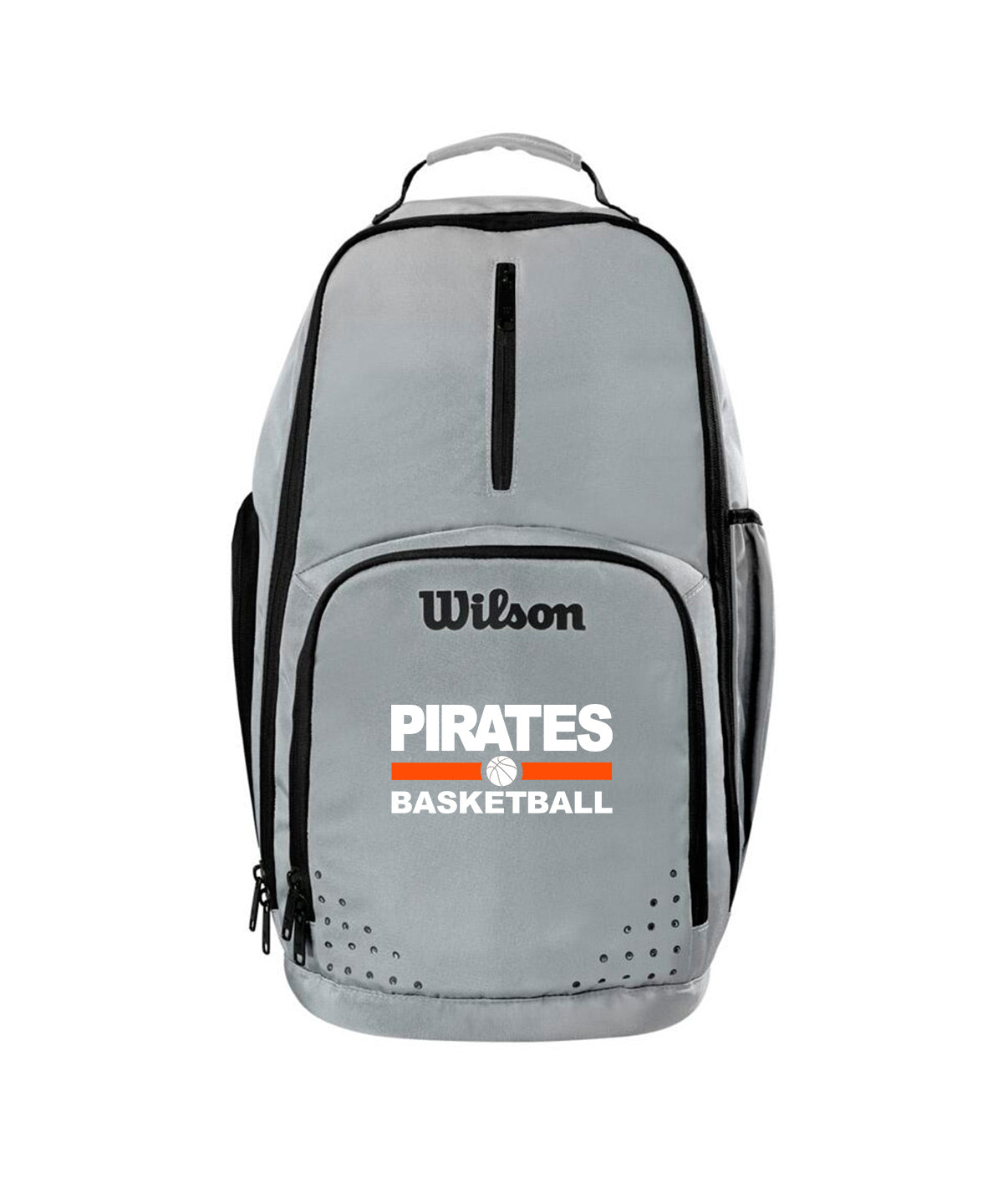 Silvergrå med svarta detaljer. Tryckt med stort Pirates-logo i vitt occh orange.