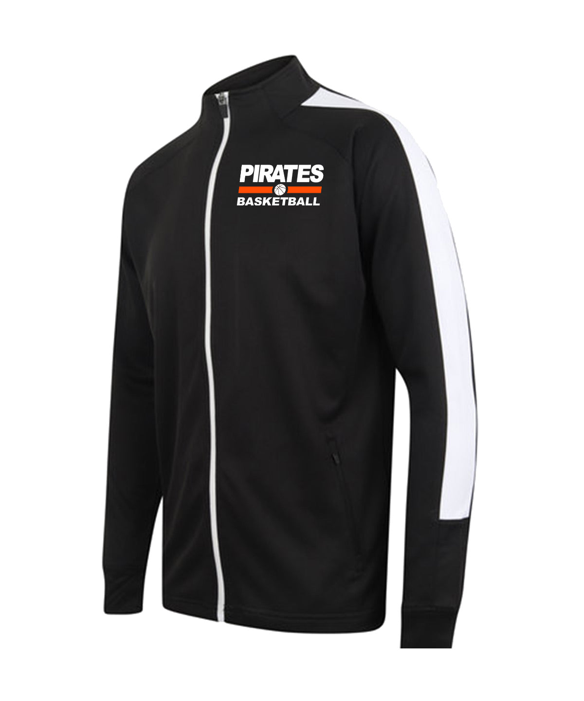 Skön tracksuit överdel i funktionsmaterial med muddar vid handleden. Svart med vita detaljer. Onsala Pirates tryckt på vänster bröst.